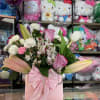 This elegant pink handbag with all of mix flowers is made of cute roses , tulips ,carnation,wax and much more ready to impress