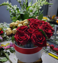 25 red roses or of any of your choice, 5 Sunflowers and multiple Baby Breath