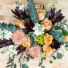 In the enchanting Charming Grove, an elegant blend of colors comes together, merging the inviting warmth of peach tones, the lively vibrancy of sunset shades, and the refined elegance of creamy whites. The addition of luxuriant green foliage and textured accents enhances this captivating arrangement, crafting a whimsical ambiance that ignites joy and sparks the imagination.