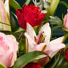 Red Roses, Pink Roses, Pink Premium Lilies, and Eucalyptus.