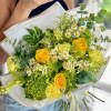 The Sunny Day Bouquet combines the cheerful beauty of yellow roses with the delicate charm of white chamomiles. The bright yellow roses symbolize joy, friendship, and new beginnings, while the chamomiles represent purity and peace. Together, they create a warm and inviting arrangement that’s perfect for any occasion.