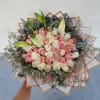 Eleva cualquier momento especial con este majestuoso ramo diseñado para cautivar los sentidos. Una combinación armoniosa de rosas en tonos rosa pastel y blanco puro, que simbolizan la ternura y la admiración. Este arreglo se distingue por la inclusión de elegantes azucenas (lirios) aún en botón, listas para florecer y llenar el ambiente con su fragancia única.