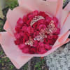 Este hermoso ramo buchón está compuesto por una selección de rosas en tono rosa intenso, delicadamente envueltas en papel de color pastel. Destaca por sus elegantes mariposas doradas y una corona con brillantes, que aportan un toque de lujo y sofisticación. Ideal como regalo floral para ocasiones especiales o celebraciones, este diseño combina la belleza natural de las flores con un estilo único. Perfecto para comprar ramos de rosas online y sorprender a tus seres queridos. ¡Haz tu pedido hoy y añade un detalle inolvidable a cualquier momento!