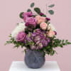 A dreamy floral arrangement for your someone special, created with blooms in shades of lavenders, pinks and whites. This beautiful display comes arranged in a lovely frosted lavender keepsake vase.