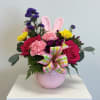 So cute and sweet as can be, this peek-a-boo bunny will of course bring a smile! Celebrate the new season with a unique mix of flowers hand designed and arriving in a sweet bunny keepsake candy dish ( bunny colors vary: white, pink or mint).