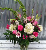 Each arrangement will be a little different, but still reflecting the style and shape shown. We use the freshest blooms in house to create your masterpiece.
