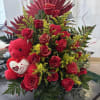 Oriental style rose bouquet with teddy bear and roses