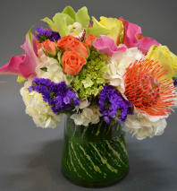 In some instances, the florists’ photo may represent an overall theme or look and include a one-of-a-kind vase which cannot be exactly replicated. Although the actual bouquet may not precisely match the photo, its temperament will. Occasionally, substitutions of flowers or containers happen due to weather, seasonality and market conditions which may affect availability. If this is the case with the gift you've selected, the local florist will ensure that the style, theme and color scheme of your arrangement is preserved and will only substitute items of equal or higher value.