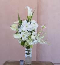 In some instances, the florists’ photo may represent an overall theme or look and include a one-of-a-kind vase which cannot be exactly replicated. Although the actual bouquet may not precisely match the photo, its temperament will. Occasionally, substitutions of flowers or containers happen due to weather, seasonality and market conditions which may affect availability. If this is the case with the gift you've selected, the local florist will ensure that the style, theme and color scheme of your arrangement is preserved and will only substitute items of equal or higher value.