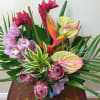 Make jaws drop with this display of bold and exotic Tropical Flowers. A hearty and lush combination of Anthurium, Protea, Birds of Paradise and Cymbidium Orchids.