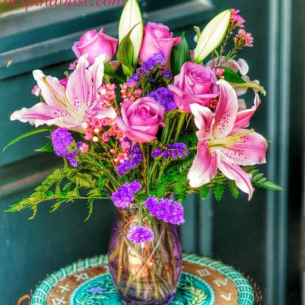 Colorful flowers delivered to my mom, designer’s choice once again wonderful. She loves the fragrance of the lilies as she enters the house. The flowers arrive 5 days ago and are all still perfect, even the blue ones, a favorite of hers.