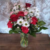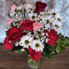 Fan the flames of love with this ravishingly romantic array of gorgeous red roses and other favorites in a sparkling clear glass cylinder vase. Will she be your Valentine? How could she resist?