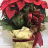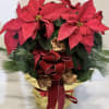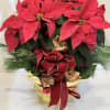In time for your holiday parties and gatherings, measuring 24"x24" this blooming poinsettia will come decorated with pine cones, winter greens and wrapped in decorative foil, tied together with a holiday red bow.