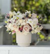 In some instances, the florists’ photo may represent an overall theme or look and include a one-of-a-kind vase which cannot be exactly replicated. Although the actual bouquet may not precisely match the photo, its temperament will. Occasionally, substitutions of flowers or containers happen due to weather, seasonality and market conditions which may affect availability. If this is the case with the gift you've selected, the local florist will ensure that the style, theme and color scheme of your arrangement is preserved and will only substitute items of equal or higher value.