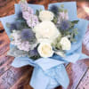 A beautiful hand-wrapped inspired by Columbia’s signature blue, featuring elegant white roses, soft lavender blooms, and striking blue thistle, wrapped in matching blue tones. Designed to celebrate achievement and new beginnings, this bouquet is perfect for Columbia University graduations. A fresh, modern design that feels polished, meaningful, and far from ordinary—just like the milestone it honors.