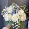 A petite hand tied bouquet designed in your color palette of choice and finished with satin ribbon. A small vase is provided to keep the posy hydrated. Please note in the 'Special Instructions' box what colors you'd like to see in the posy along with any special ribbon color. If nothing is noted, we will design with white flowers, a bit of foliage and finish with ivory satin ribbon.