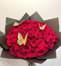 30 long stem roses, with butterflies