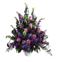 Designed for sympathy or memorial display, this arrangement offers a heartfelt way to celebrate a life with warmth and light. If you need it sized or delivered specifically for a service, please select the appropriate delivery option at checkout or contact us for timing to ensure it arrives for the ceremony.