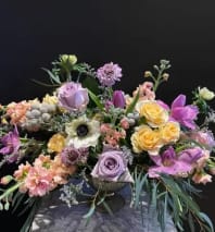 This is a designers choice a perfect combination of hues and textures makes the arrangement truly one of a kind. Our designer will carefully pick the perfect florals in these colors and tones.