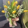 A fresh and elegant vase featuring 10 premium tulips in a beautiful mix of either white, orange, pink, purple, and yellow. While colors may vary from the photo, each arrangement is thoughtfully designed to bring a bright, cheerful touch perfect for any occasion.