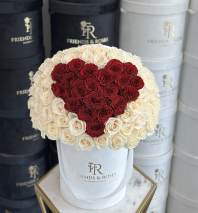 This romantic heart-shaped arrangement features a beautiful blend of red and white roses, symbolizing love and purity. Carefully arranged in our luxurious branded box, it offers an elegant and heartfelt gift for any special occasion , expressing deep affection and admiration.