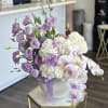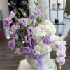 A creative designer composition in a modern vase, featuring delicate white and lilac tones - perfect for enhancing any stylish interior.
