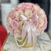A breathtaking display of 50 powdery pink eternal roses, delicately arranged in a luxurious gold vase adorned with shimmering pearls. Timeless elegance captured in a piece that speaks of grace, love, and refined beauty.
