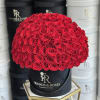 100 red roses in a black velvet box.