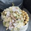 A flat ivory box with apples, chocolates, honey, and white flowers Ideal for people who love both flowers and sweets.