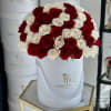 A timeless expression and elegance, this classic arrangement features a harmonious blend of premium red and white roses, expertly hand - arranged in a signature box. The deep red roses symbolize love and passion, while the soft white roses add balance , grace , and sophistication. Perfect for anniversaries, celebrations, or meaningful gestures, this luxurious bouquet makes a refined statement that never goes out of style.