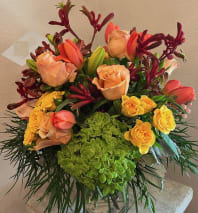 In some instances, the florists’ photo may represent an overall theme or look and include a one-of-a-kind vase which cannot be exactly replicated. Although the actual bouquet may not precisely match the photo, its temperament will. Occasionally, substitutions of flowers or containers happen due to weather, seasonality and market conditions which may affect availability. If this is the case with the gift you've selected, the local florist will ensure that the style, theme and color scheme of your arrangement is preserved and will only substitute items of equal or higher value.