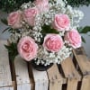 Soft pink roses gathered into a tight, rounded bouquet create a soft, romantic focal point in this Mother's Day flower arrangement-the kind of gift that will make the person you're thinking of feel genuinely seen. Dark Muse Femme pairs those blushing rose heads with airy white baby's breath and deep green foliage, set in a matte black ceramic vase for a striking pale-on-dark contrast that reads both classic and modern. Perfect for Mother's Day, anniversaries, birthdays, or a thoughtful "just because" moment, it sends a message of tenderness and calm.