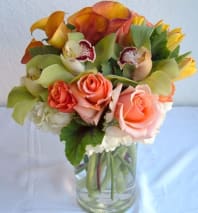 In some instances, the florists’ photo may represent an overall theme or look and include a one-of-a-kind vase which cannot be exactly replicated. Although the actual bouquet may not precisely match the photo, its temperament will. Occasionally, substitutions of flowers or containers happen due to weather, seasonality and market conditions which may affect availability. If this is the case with the gift you've selected, the local florist will ensure that the style, theme and color scheme of your arrangement is preserved and will only substitute items of equal or higher value.