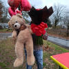 Wrapped 100 rose bouquet and a XL teddy bear