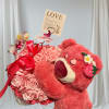 Beautiful glass vase with eternal ribbon roses and Teddy bear Lotso ideal for any special occasion