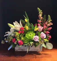 In some instances, the florists’ photo may represent an overall theme or look and include a one-of-a-kind vase which cannot be exactly replicated. Although the actual bouquet may not precisely match the photo, its temperament will. Occasionally, substitutions of flowers or containers happen due to weather, seasonality and market conditions which may affect availability. If this is the case with the gift you've selected, the local florist will ensure that the style, theme and color scheme of your arrangement is preserved and will only substitute items of equal or higher value.