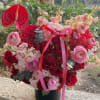 Crimson Love Affair is a bold and luxurious floral arrangement designed to capture the intensity of true romance. Overflowing with rich red roses and delicate blush blooms, this design is both passionate and elegant. The vibrant red anthurium adds a modern sculptural touch, while soft pink textures bring balance and tenderness.