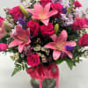 A gift means so much more when it’s straight from the heart. This stunning Valentine’s bouquet of passionate pinks and purples is expertly arranged in a chic cylinder vase and wrapped in a purple satin ribbon for the perfect finishing touch. It’s a romantic surprise that speaks volumes about the love you feel.