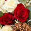 PINECONE GLOW- PINECONES, RED FREEDOM ROSES, PLAYA BLANCA ROSES, BABY BLUE EUCALYPTUS, WAXFLOWERS, SILVER DOLLAR EUCALYPTUS, ILEX BRANCHES, & WINTER GREENERY ACDCENTS