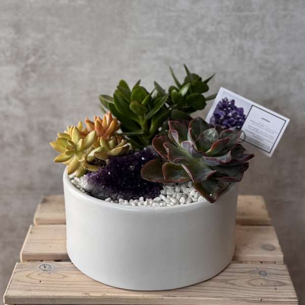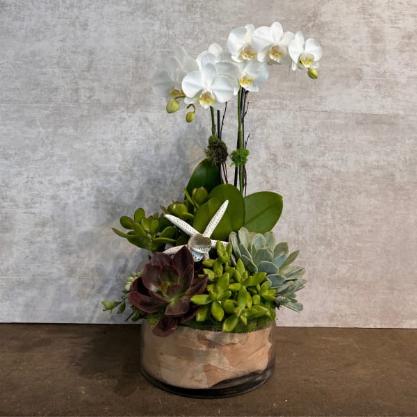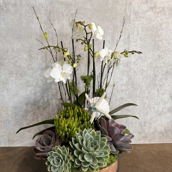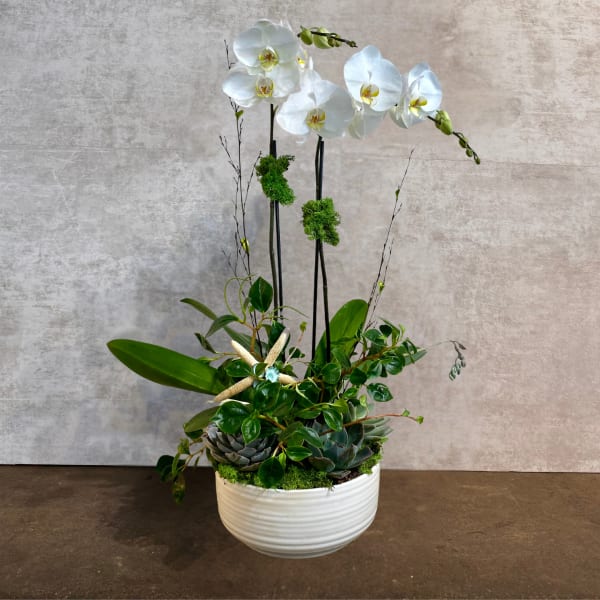 Beautiful succulent and orchid plant! Living art!!