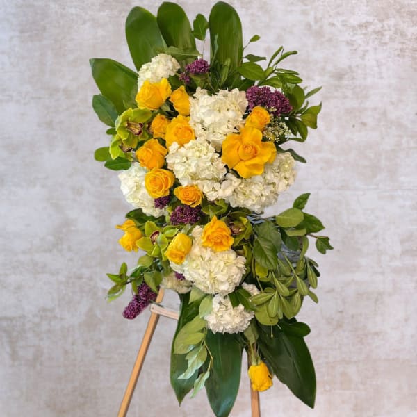 A beautiful arrangement. Wonderful service. They made sure the delivery was proper.