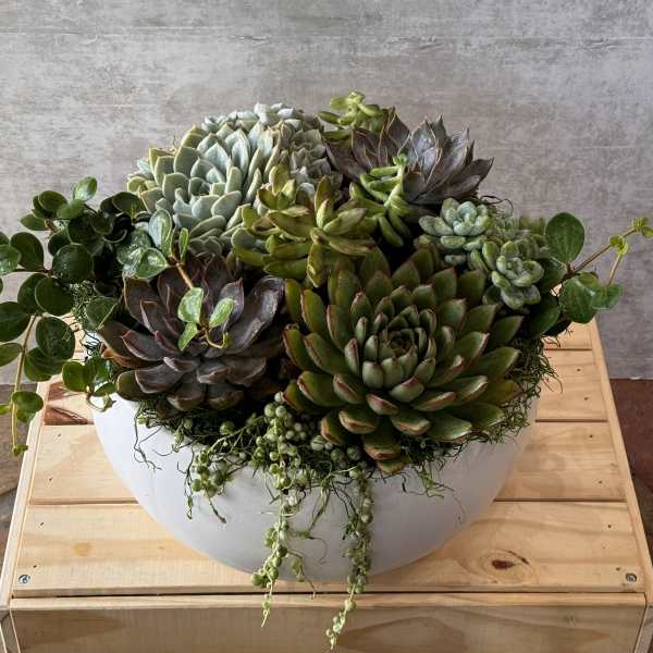 My cousin loved the arrangement. She did send me a picture and I would say my only complaint is that the foliage is different. I picked this one out because I liked all the succulents. From what I can tell from her picture, it is more foliage than succulent. So for that I am slightly disappointed because she LOVES succulents and that is why I choose this one. She hasn't seen the sample so she has nothing to compare it with. I was in your shop this weekend from Michigan and loved it and bought a succulent to bring home. We both love succulents. I am disappointed that her arrangement was more foliage than succulent. She still likes it, but it is not what the picture shows so for that reason I am slightly unhappy.