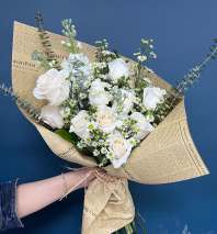 With cheerful whites, soft peach, pastel blue, and buttery yellow, “Spring Blossom” captures the feeling of fresh light pouring through the window. Arranged with a painter’s touch, it’s the bouquet version of a deep breath—gentle, joyful, and full of life.