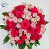 Paris doesn't need a reason. It's the city that turned flowers into fashion and romance into an art form — where a bouquet in a market stall looks like it belongs in a gallery. This arrangement earns the name. Bold, saturated roses layered with soft blush accents build into a full, opulent composition that feels both grand and deeply personal. Couture floristry in a modern glass vessel, made for the moments that deserve that level of intention.