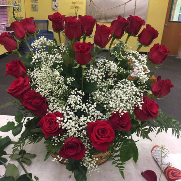 The flower delivered did not look like the image. The white small flowers and stems were too short. He roses were not arrange by height, it seem as though it was rushed. Other than that, it's a beautiful arrangement.
