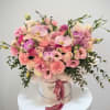 Bring elegance to every occasion with this luxurious hat box filled with soft pink orchids, delicate roses, lisianthus, and carnations. Designed in a chic round box with a satin ribbon, this arrangement embodies romance and sophistication. Perfect for birthdays, anniversaries, or simply to brighten someone’s day, our handcrafted bouquet showcases the finest seasonal blooms.