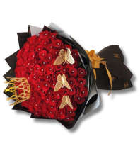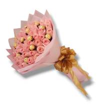 Beautiful bouquet of 24 red roses includes 12 chocolates and a ribbon, perfect for any occasion.