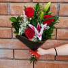Standard - 3 Red Roses, 1 Stargazer Lily (2-3 Blooms), Fresh Garden Greens and Filler - Wrap