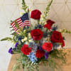 Please note: Flower and vase varieties may vary based on availability. Our designers will always maintain the patriotic red, white and blue color pallett.