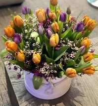 Elegant composition in a box, collected from a variety of flowers and exquisite orchids, amazes with its refined combination of shapes and shades. Orchids give the bouquet a special luxury and elegance, making it truly unique. This gift will become a symbol of beauty and fine taste!